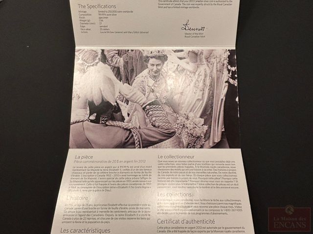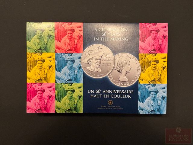 Lot # 90 - Pièce de $20 1952-2012 en Argent pur 60ième Anniversaire haut en couleur (pas de taxe)