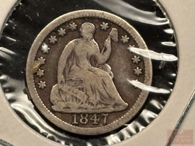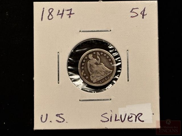 Lot # 140 - Pièce de 5 Cents 1847 US en Argent (en bonne condition) rare