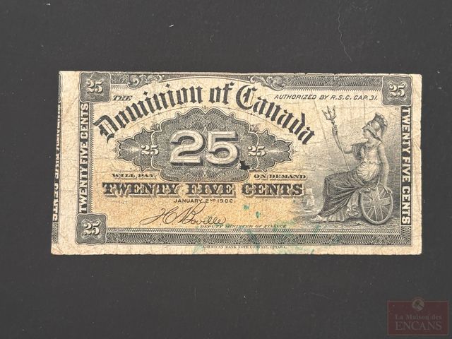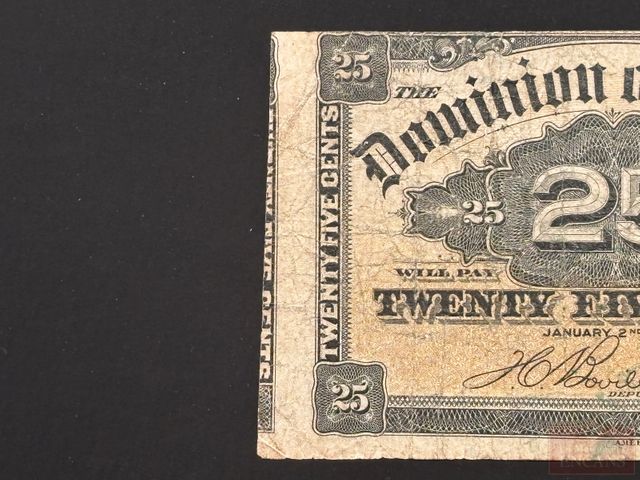 Lot # 32 - Billet erreur de 25 Cents 1900 du Dominion (mal coupé)