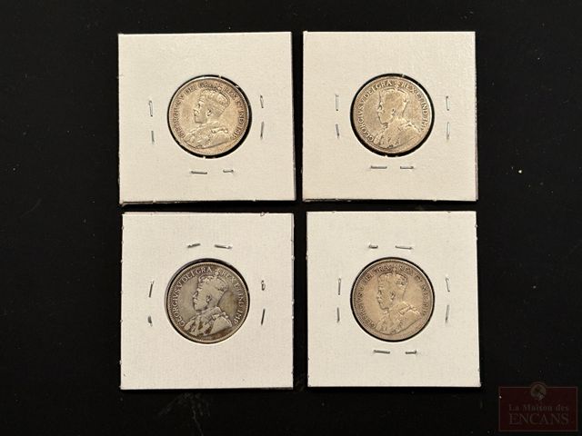 Lot # 196 - 4 Pièces de 25 Cents 1928-1929-1931-1932 en Argent