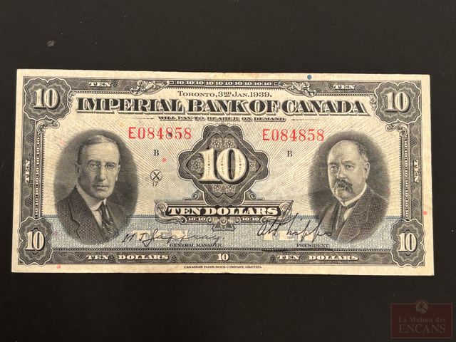 Lot # 56 - Billet de $10 1939 Imperial Bank (en très bonne condition)