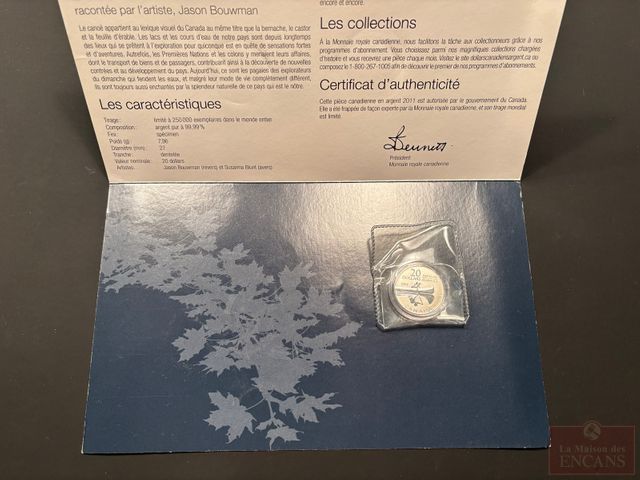 Lot # 94 - Pièce de $20 2011 en Argent pur Canoë (pas de taxe)