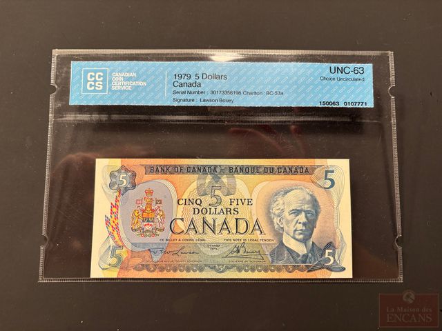 Lot # 103 - Billet de $5 1979 certifié par CCCS UNC-63