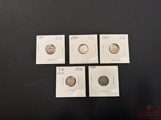 Lot # 178 - 5 Pièces de 5 Cents 1920 en Argent