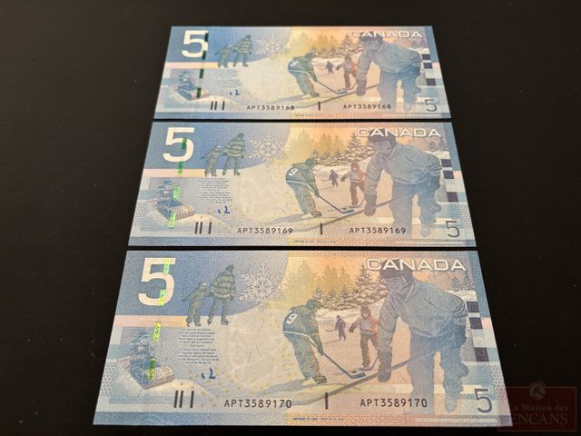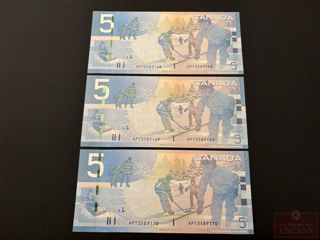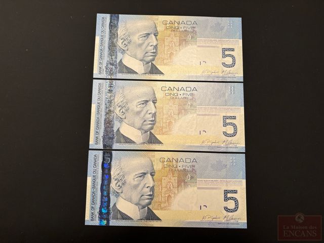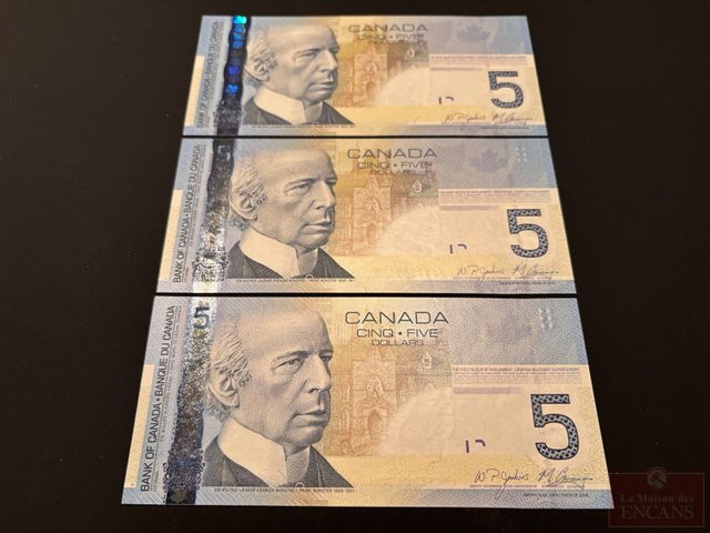 Lot # 161 - 3 Billets de $5 2006 avec numéros consécutifs neufs Gem UNC
