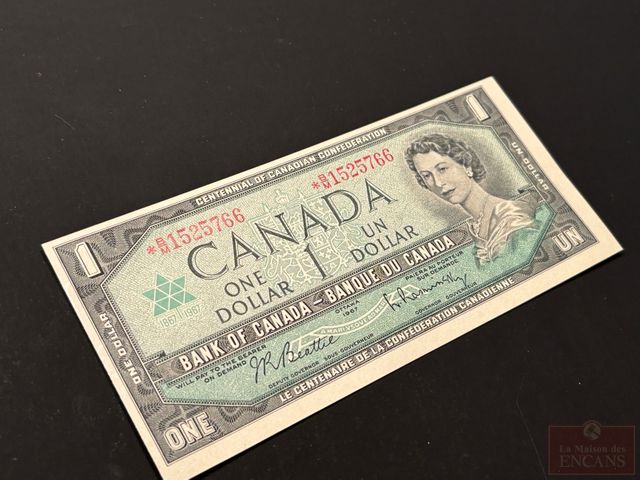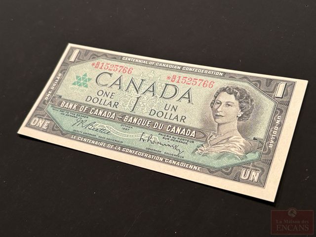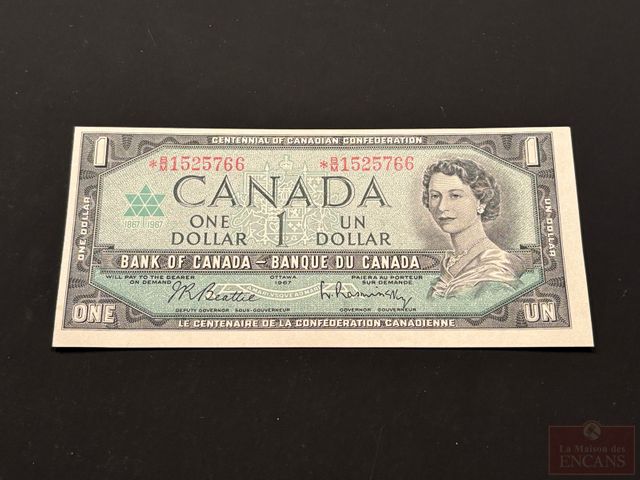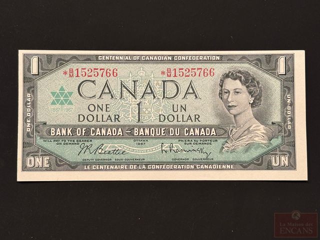 Lot # 11 - Billet de $1 1967 avec astérisque (numéro de remplacement) incirculé/neuf