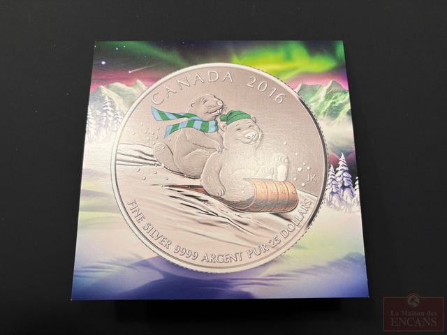 Lot # 51 - Pièce de $25 colorée 2016 en Argent pur Les Joies de l’Hiver (pas de taxe)