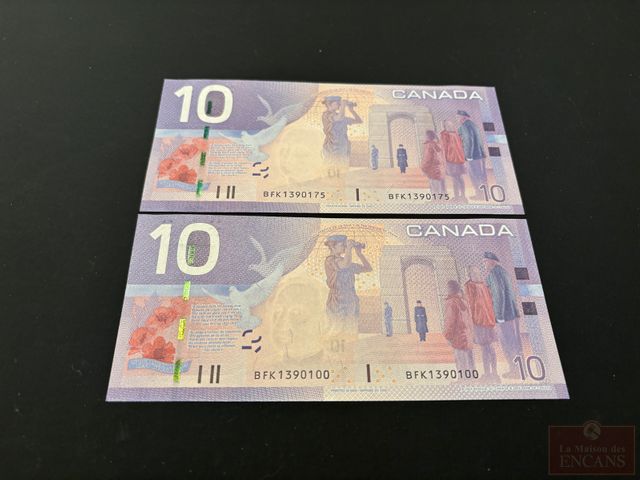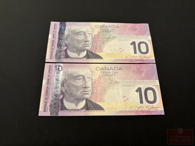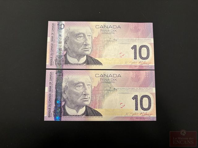 Lot # 162 - 2 Billets de $10 2005 incirculés/neufs