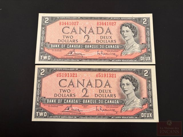 Lot # 185 - 2 Billets de $2 1954 incirculés/neufs