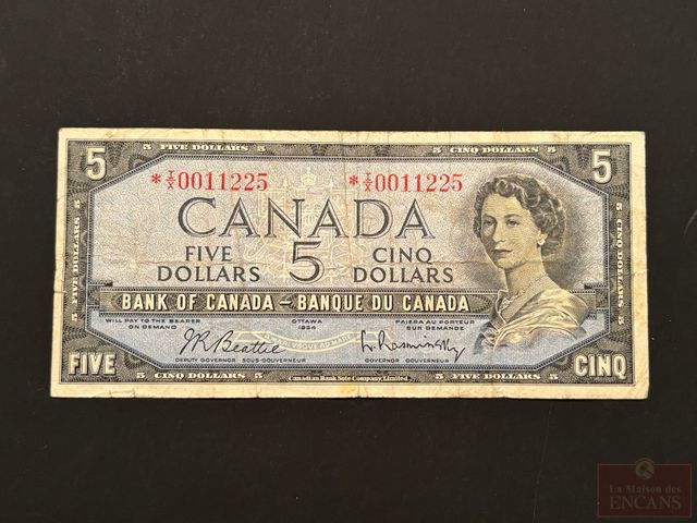 Lot # 12 - Billet de $5 1954 avec astérisque (numéro de remplacement) préfixe i/x (plus rare)