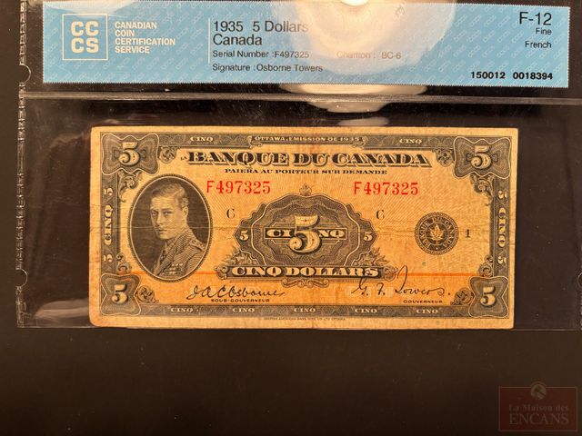 Lot # 150 - Billet de $5 1935 en Français certifié CCCS F-12 (plus rare)