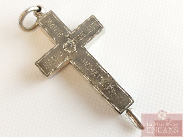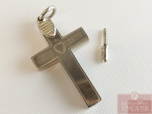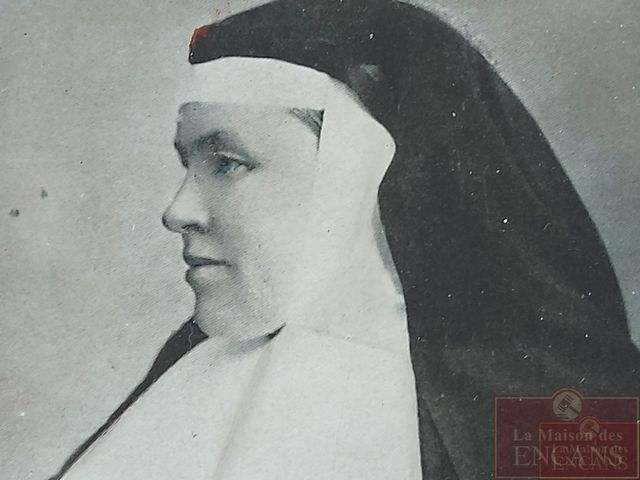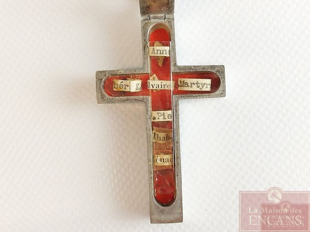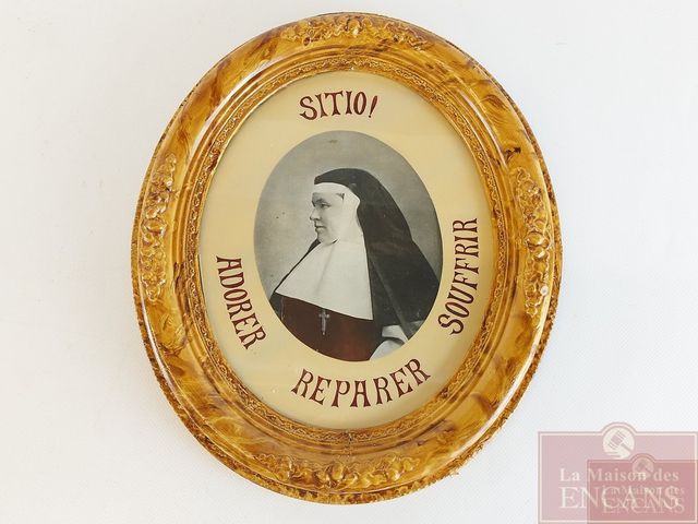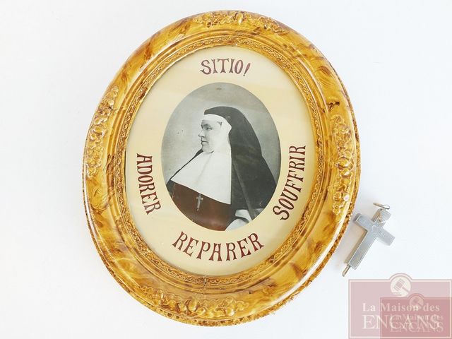 Cadre-photo de Mère Catherine Aurélie - Fondatrice de l'institut des religieuses adoratrices du précieux sang - 1833-1905 - St-Hyacinthe - avec son pendentif croix en argent renfermant de multiples reliques dont une de Ste-Anne - croix mesurant 2.5 pouces de hauteur et le cadre mesurant 13x11 pouces