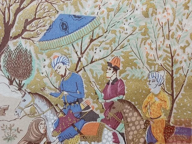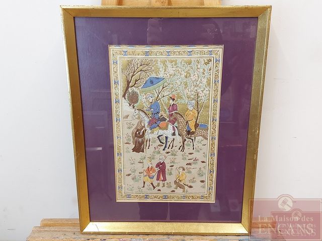 Lot # 89 - Ancienne peinture sur soie moyen-orientale mesurant 12x7.5 pouces SOLD