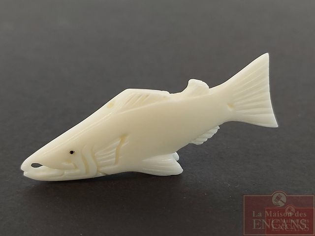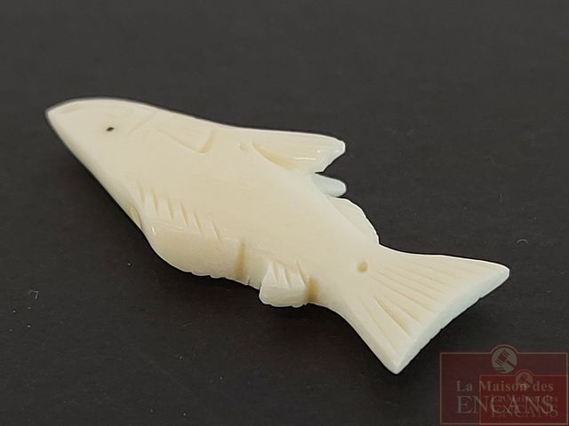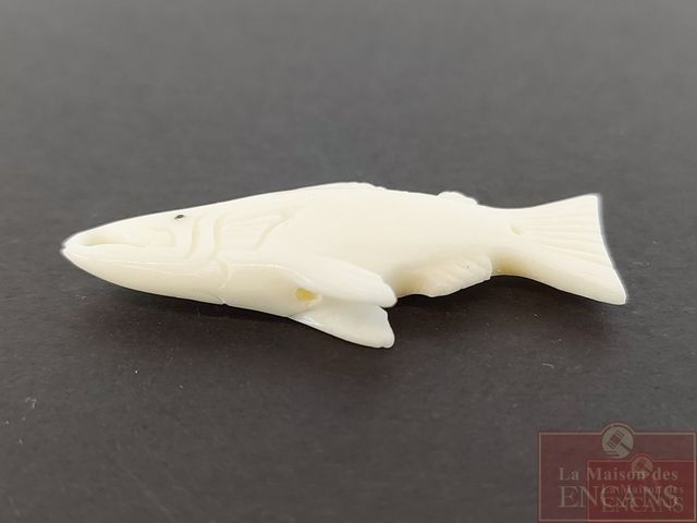 Lot # 63 - Magnifique couple de saumon arctique d'une rare finesse entièrement sculpté à la main dans de l'ivoire de défense de morse par un artiste esquimau - 1.5 pouce de longueur SOLD