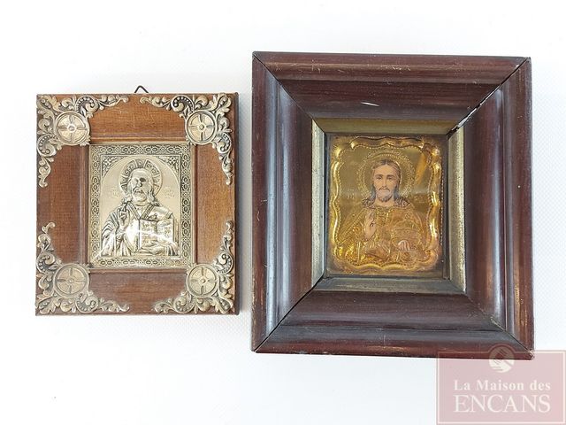 Deux icônes religieuses mesurant 4x3 pouces et 3x2.5 pouces