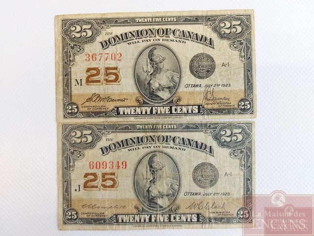 Lot # 52 - Deux billets de 25 sous du Dominion of Canada de 1923 SOLD