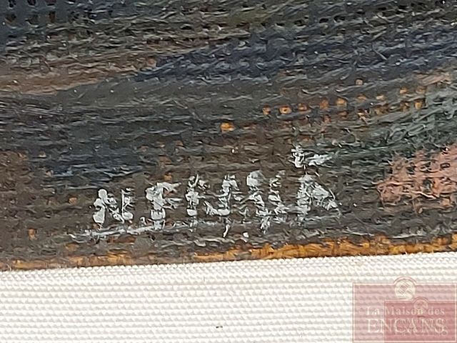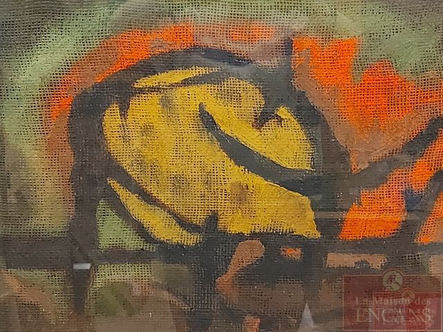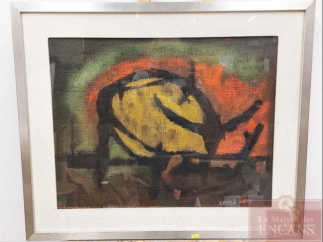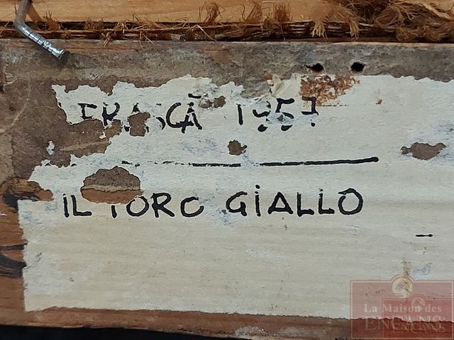Lot # 9 - Frasca NATO - Huile sur toile de jute ancienne - signée - représentant un taureau stylisé - titré Il Toro - 16x20 SOLD