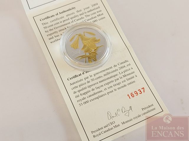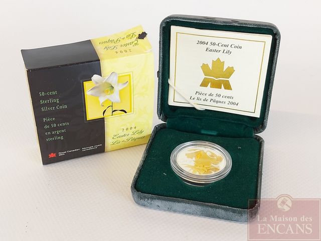 Lot # 232 - Pièce de 50 sous en argent sterling - Le lis de Pâques - 2004 - canadiens - dans son coffret avec son certificat VENDU
