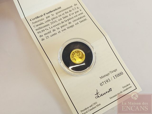 Lot # 225 - Pièce canadienne de 2010 en or pur - 0.5 gramme - Caribou - sans taxes  SOLD