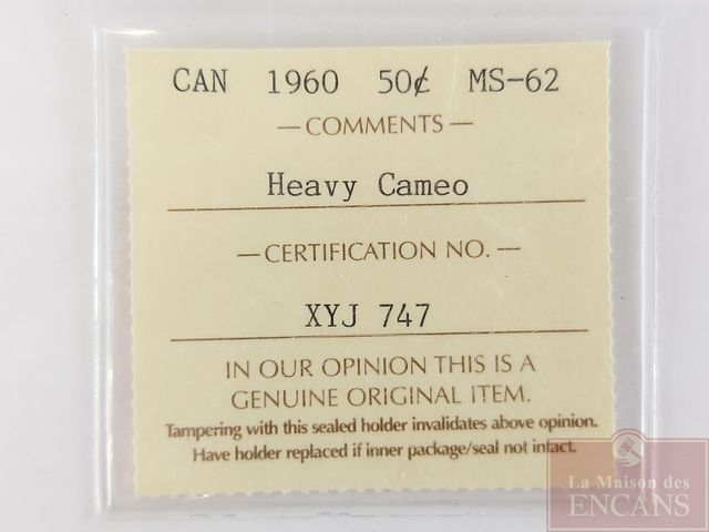 Lot # 158 - Pièce de 50 sous canadiens de 1960 - en argent - Heavy Cameo - gradée SOLD