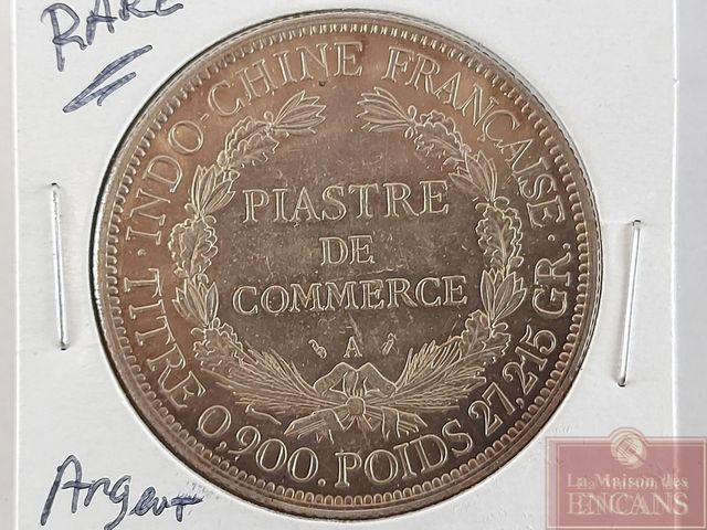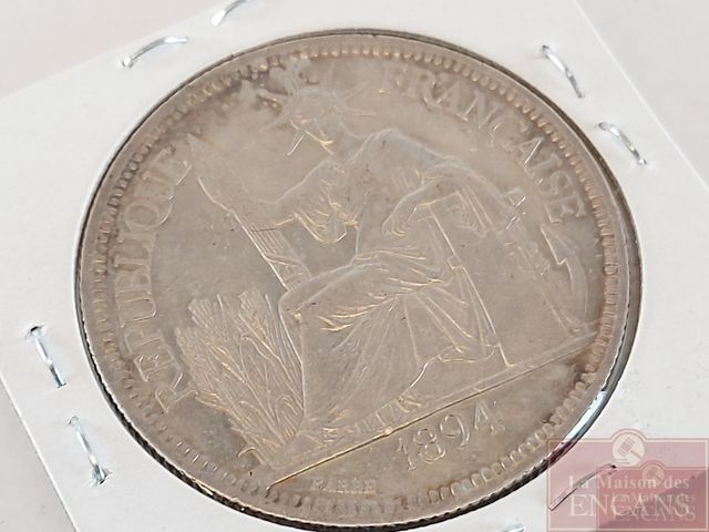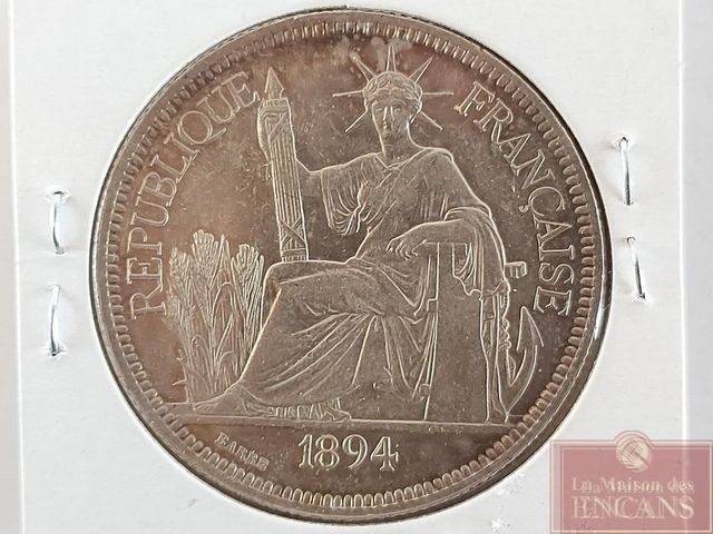 Lot # 41 - Piastre de commerce - Indochine Française 1894 - en argent 900 - poids 27.215 grammes SOLD