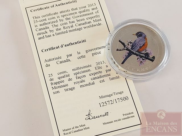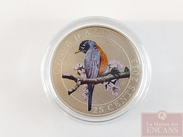 Lot # 148 - Pièce de 25 sous colorée de 2013 représentant le merle d'Amérique - Monnaie Royale Canadienne  SOLD