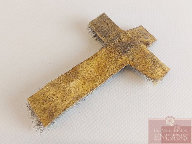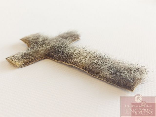 Lot # 67 - Rare et très ancienne croix - entièrement réalisée à la main dans de la fourrure de phoque par un artiste esquimau sous l'influence des tout premiers contacts esquimaux avec les missionnaires - circa 1940 - en excellente condition - collection Forcati archéologue et historien - la plus grande de doute - 4.25 pouces SOLD