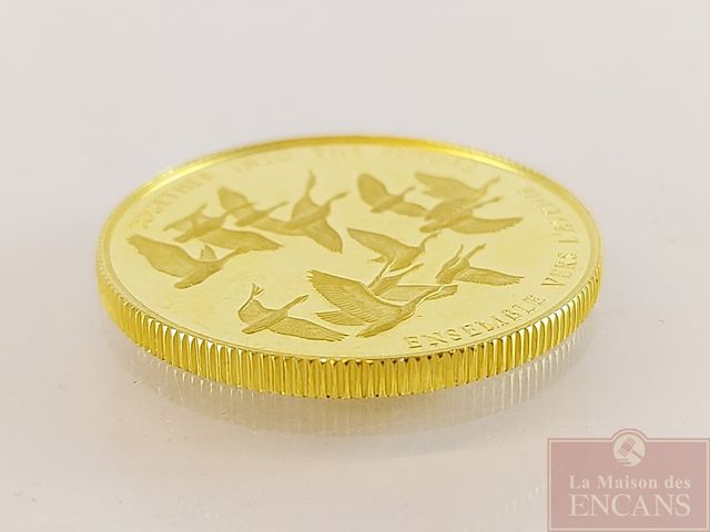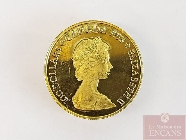 Lot # 123 - Pièce en or 22 carats - Ensemble vers l'avenir - 100 dollars canadiens - 1978 - pesant 17 grammes (1/2 onces)  SOLD