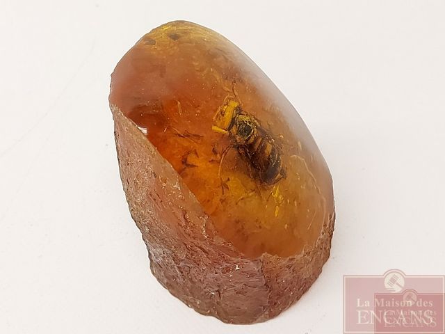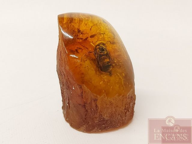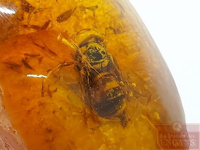 Lot # 74 - Très jolie bourdon enchassé dans de l'ambre - 3.75 pouces par 2.75 pouces  SOLD