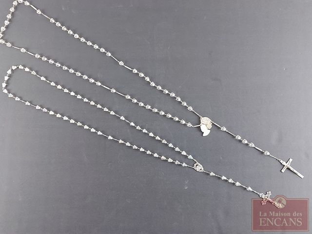 Deux chapelets en argent et cristal - le plus grand mesurant 40 pouces de longueur