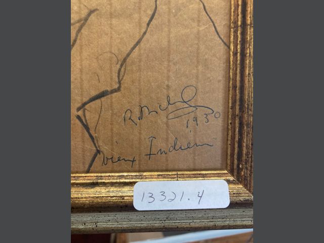 Lot # 37 - Crayon sur papier signé René Richard 1930 9 X 7,5 Titre: Vieux Indien VENDU