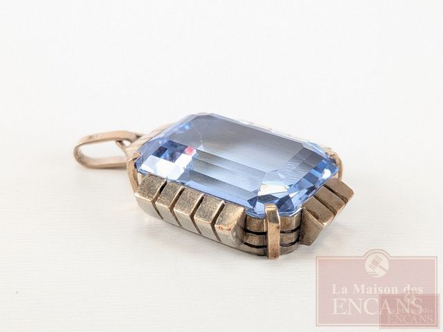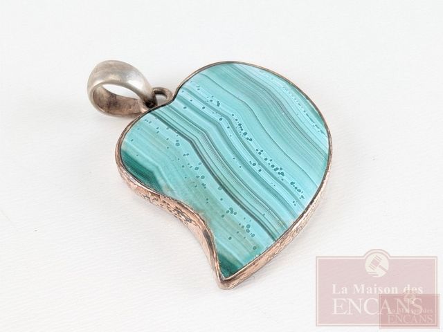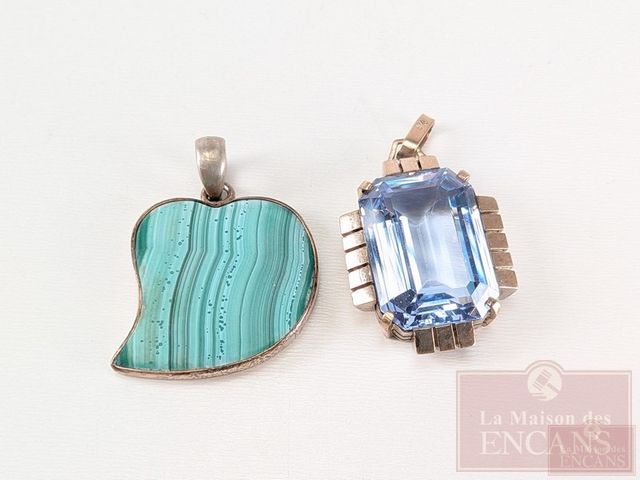Lot # 171 - Pendentif art-déco en or 9k, serti d'une pierre et mesurant 1 pouce de hauteur, ainsi qu'un pendentif en argent et malachite