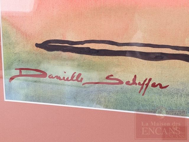 Danielle SCHEFFER- Aquarelle signée, mesurant 19.5x29 pouces
