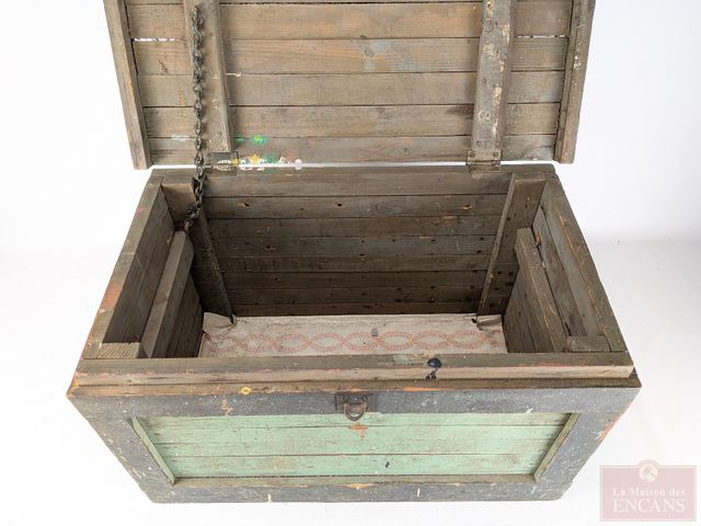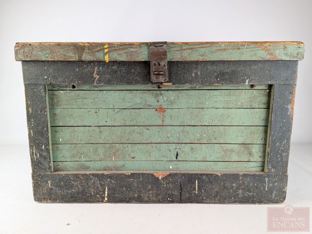 Lot # 44 - Ancien coffre en bois à clous carrés et fer forgé mesurant 25 pouces de largeur - datant du 19em siècle