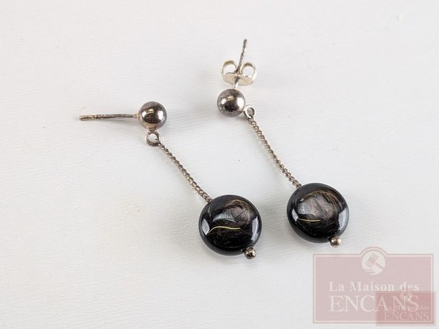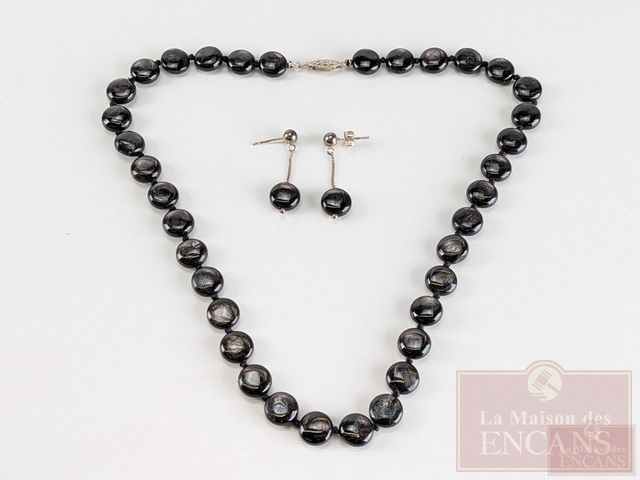Lot # 165 - Collier d'hématite avec fermoir en argent, mesurant 16 pouces de longueur, ainsi que paire de boucles d'oreilles assorties