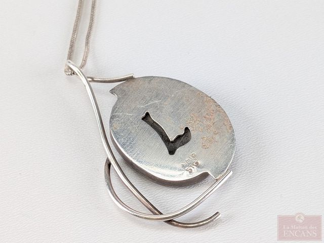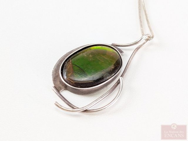 Lot # 174 - Pendentif en argent serti d'une amolite, mesurant 1.25 pouces de hauteur, avec sa chaine en argent mesurant 20 pouces de longueur