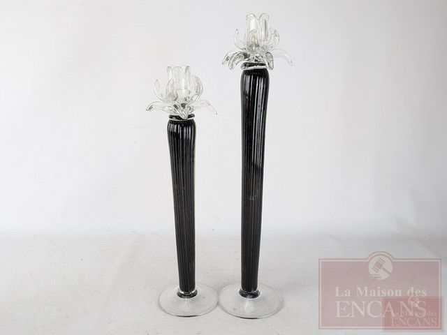 Paire de chandeliers en verre soufflé, mesurant 18 pouces de hauteur