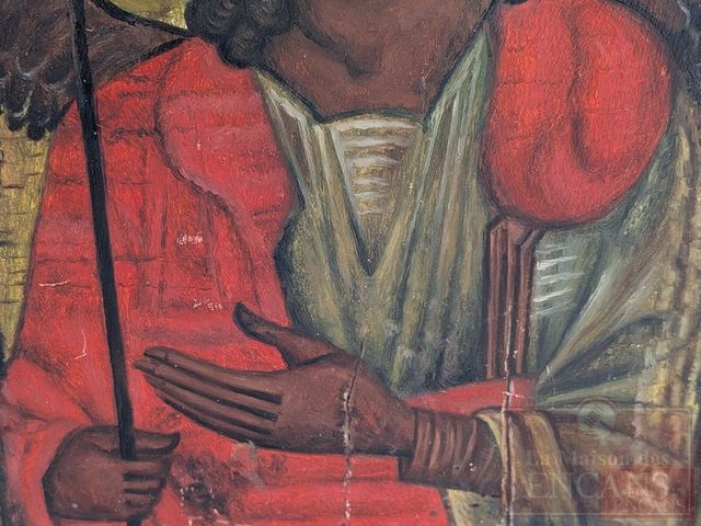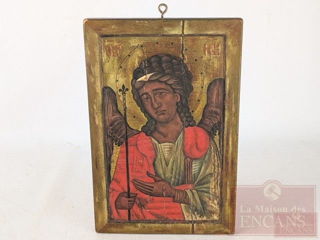 Lot # 191 - Icône orthodoxe sur bois, peinte à la main avec la méthode tempura et mesurant 10.5x7 pouces