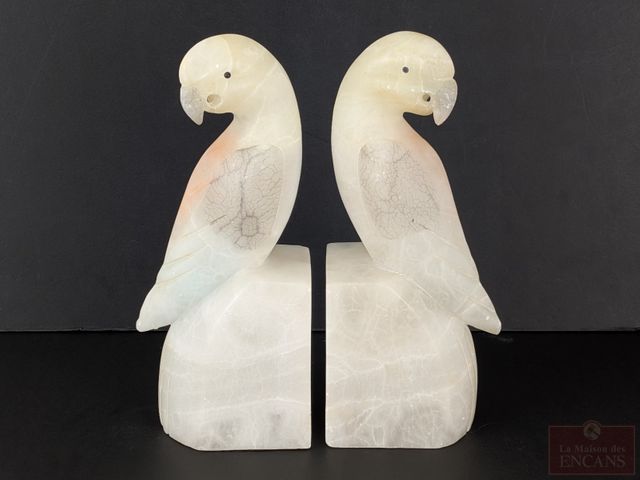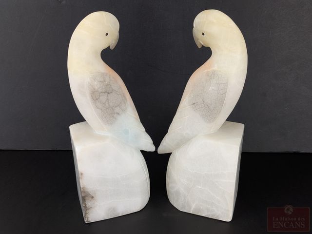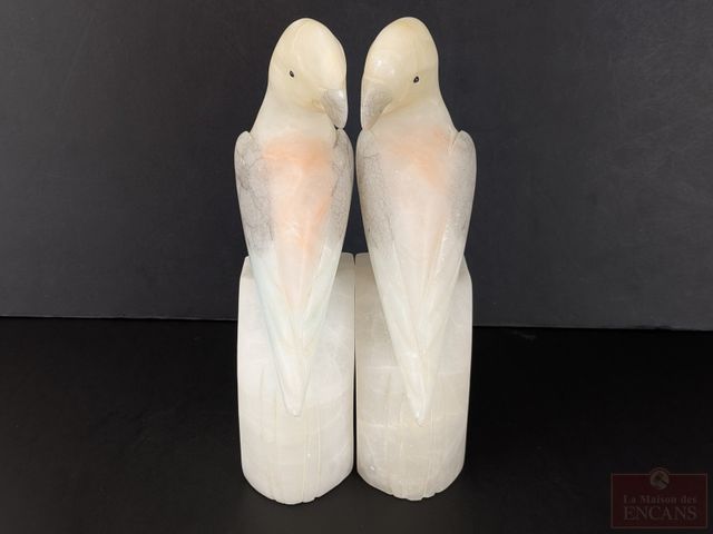 Lot # 36 - Paire d'appuis livres sculptés sur albâtre représentant des oiseaux et mesurant 10 pouces de hauteur