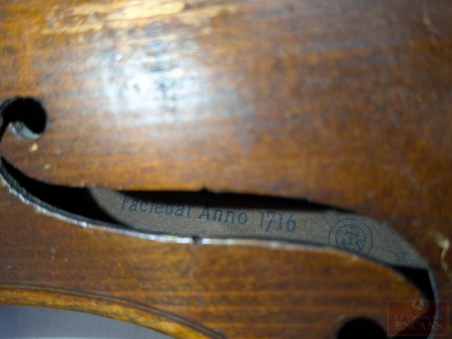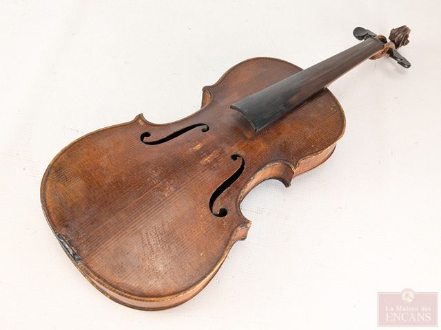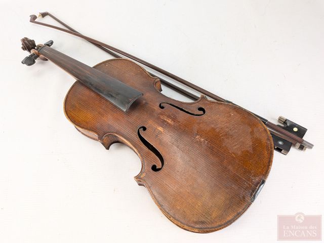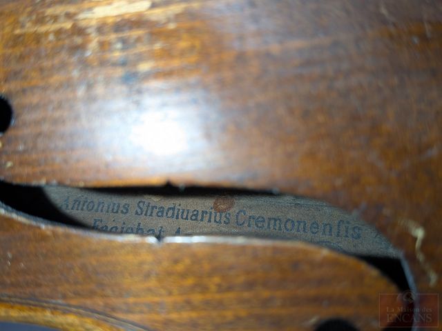 Ancienne reproduction d'un violon d'Antonius Stradivaruis, modèle Cremonensis Faciebal anno 1716, fabriqué en 1880 et mesurant 23 pouces de longueur, dans son étui de transport avec deux archets