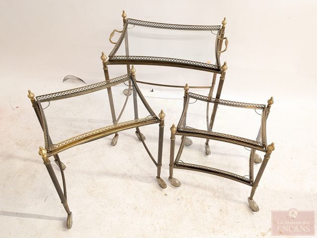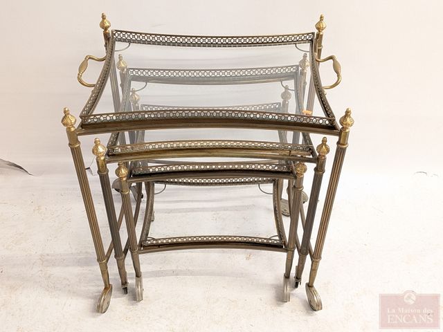 Lot # 54 - Tables gigognes italiennes laiton doré et verre - la plus grande mesurant 23 pouces de largeur