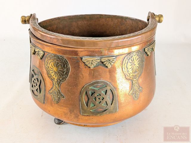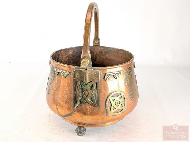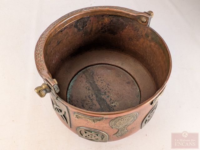Lot # 97 - Seau à cendres européen en cuivre et laiton avec décors celtiques, datant du 19eme siècle et mesurant 9 pouces de diamètre
