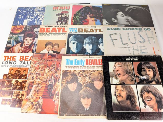 Lot # 86 - Lot de disques vinyles trente-trois tours comprenant The Beatles, Alice Cooper, John Lennon et Yoko Ono, David Bowie et autres
