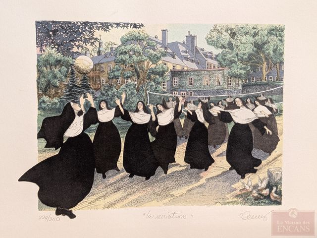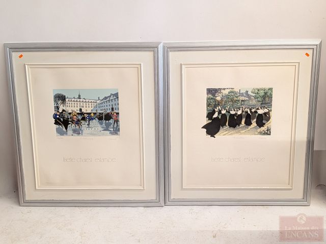 Lot # 15 - Lisette CHAREST- Deux sérigraphies signées et numérotées à la mine, dont une épreuve artiste titrée Le petit séminaire et l'autre titrée La récréation, mesurant 23x20 pouces au total chacune