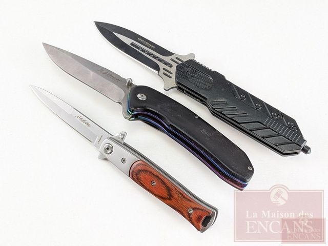 Lot # 133 - Lot de trois couteaux de poche, dont un Magnum par Boker et un Mtech USA, le plus grand mesurant 8 pouces de longueur au total lorsque déployé