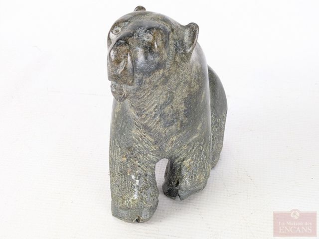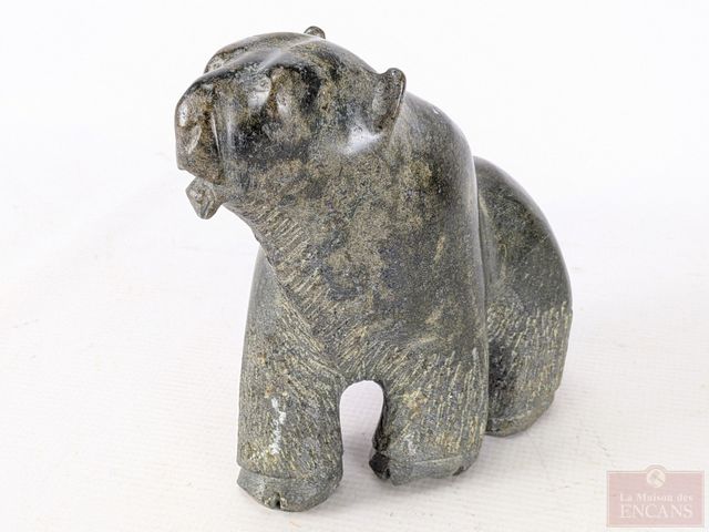 Lot # 83 - KOOT- Sculpture inuite sur pierre à savon, représentant un ours et mesurant 7 pouces de hauteur