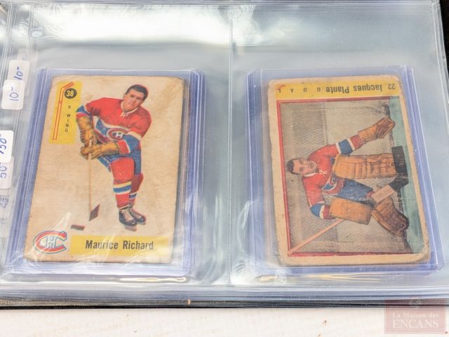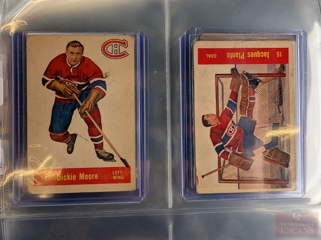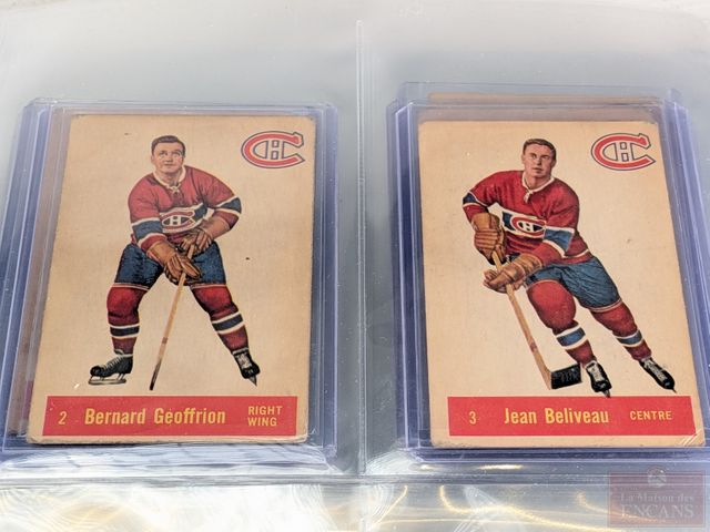 Lot de cartes de hockey vintages comprenant Bernard Geoffrion, Jean Béliveau, Jacques Plante, Maurice Richard, Tim Horton et autres