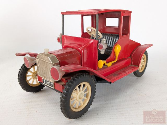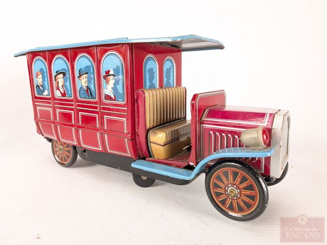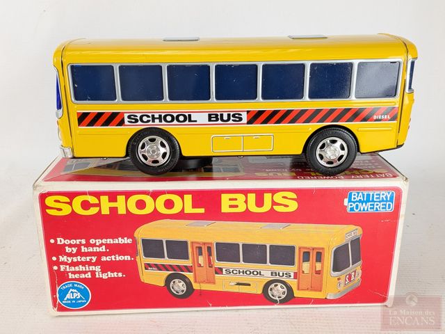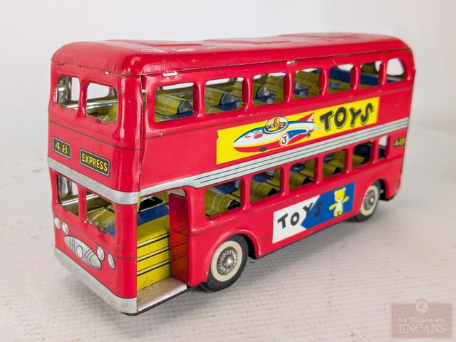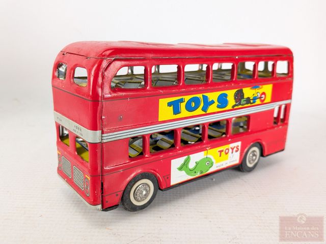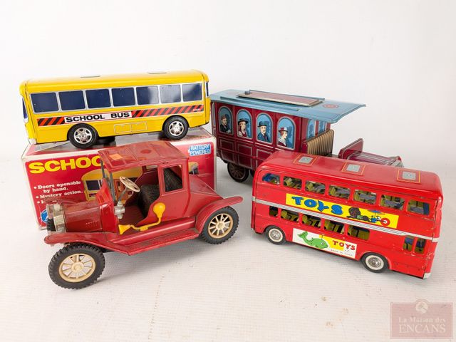 Lot # 111 - Lot de jouets vintages en métal, dont certains à batterie, comprenant un bus londonien, un Ford modèle T et un autobus scolaire, le plus grand mesurant 12.5 pouces de longueur