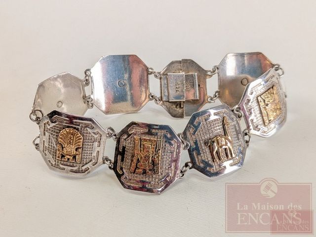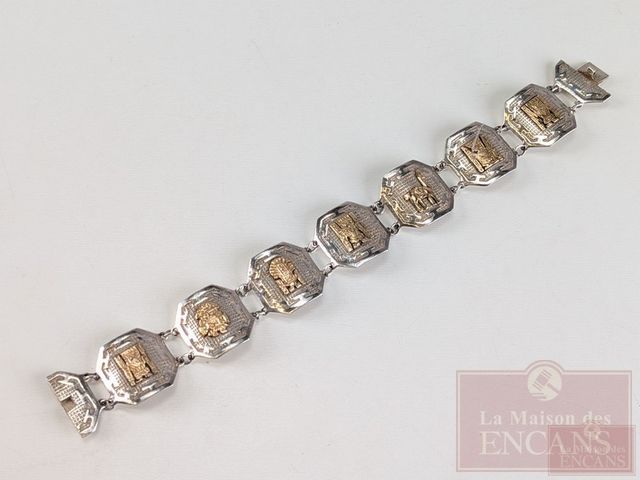 Lot # 166 - Bracelet en argent et or 18k mesurant 7.5 pouces de longueur