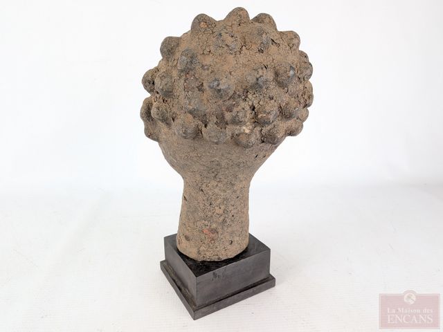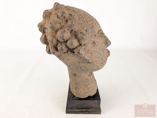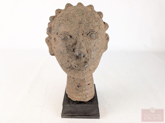 Lot # 73 - Terre-cuite africaine provenant du Togo, circa 1950, mesurant 9 pouces de hauteur, avec son support en ébène